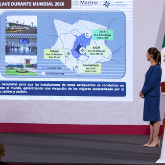 La Presidenta de México, Claudia Sheinbaum Pardo, anunció la remodelación del Aeropuerto Internacional de la Ciudad de México, que será realizada por la Secretaría de Marina y que tendrá una inversión estimada de 8 mil millones de pesos (mdp) para mejorar la experiencia del usuario y la seguridad de operación.