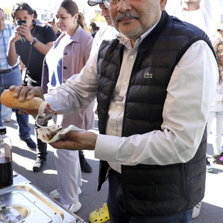 Alrededor de las 10:00 de la mañana, el Alcalde Andrés Mijes, junto a sus hijos, acudió al Festival donde recorrió los puestos instalados, platicó con sus propietarios y degustó algunos tacos acompañados de las diferentes salsas que prepararon.