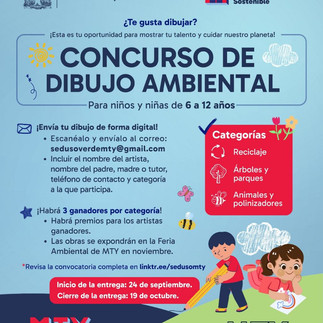 El Gobierno de Monterrey invita a la ciudadanía a participar en dos concursos creativos que celebran y promueven la cultura ambiental: el Concurso de Fotografía Ambiental y el de Dibujo Ambiental Infantil.