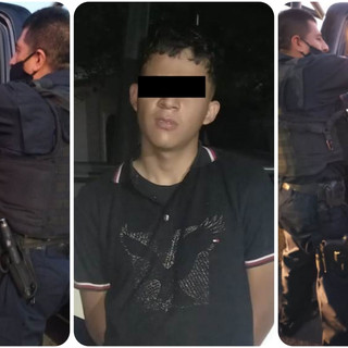 Minutos después, Aarón comienza a insultar a los oficiales, por lo que se le realiza una revisión en una mariconera negra que portaba, encontrándole un arma de fuego.