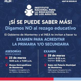 El Gobierno de Monterrey invita a la comunidad a obtener su certificado de primaria o secundaria a través de un solo examen.