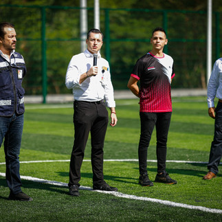 El Presidente Municipal Luis Donaldo Colosio Riojas, acompañado por funcionarios de diferentes secretarías, así como de vecinos y deportistas que se beneficiarán con ésta obra, inauguró la cancha con el silbatazo para el tiro de cuatro penales.